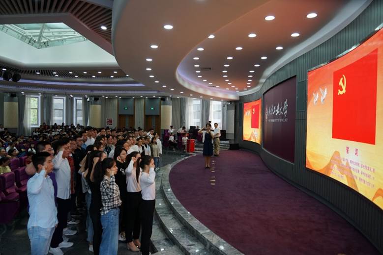 为了增强党员意识,进一步激发新发展党员的尊崇感、归属感和庄严感,让党员们不忘初心,牢记使命,在学习工作中“亮身份、忆初心、做表率”,大会上,学院党委委员为新发展预备党员代表佩戴党员徽章、颁发《党员证》,并带领全体新发展党员庄重地进行了宣誓,大家紧握右拳,以志昂扬的斗志和饱满的热情,铿锵有力地宣读了入党誓词,许下了对党庄严而神圣的誓言。