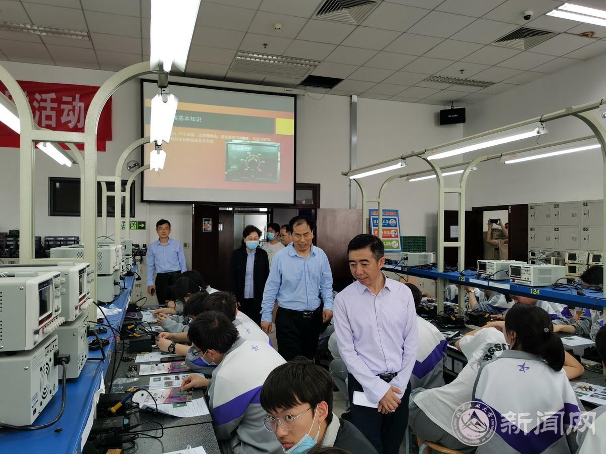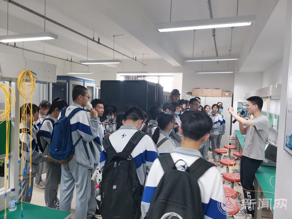 学院实验中心教师组织延庆一中师生参观了电基础教学实验室,光通信光纤制作、微电子集成电路和创翼星工坊等专业特色实验室,并展示了学生的竞赛作品、发表的论文、授权的专利。