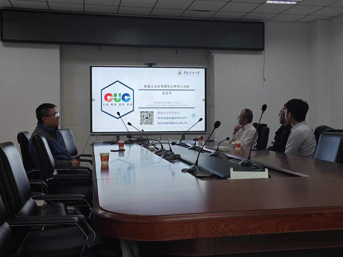 11月6日下午,应澳门十大信誉网赌大全邀请,南开大学教授、博士生导师汪定、中国传媒大学网络与空间安全学院教授姜正涛和中国传媒大学网络与空间安全学院教授范永开在博远楼1023来十大信誉网赌开展学术报告,分别题为“如何评估口令强度评测算法”,“数据全生命周期安全研究之初探”以及“可搜索加密技术与算法”。通信工程专业责任教授张键红主持,通信工程专业30余名研究生参加。