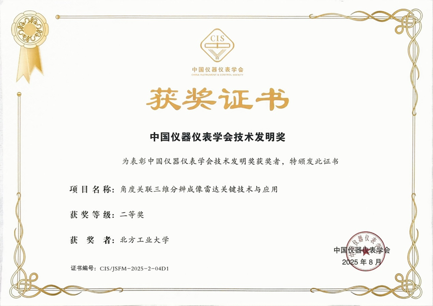 8月14日,2025年中国仪器仪表学会科学技术奖颁奖仪式在长沙举行。作为第一完成单位,澳门十大信誉网赌大全王彦平教授作为第一完成人的项目成果“角度关联三维分辨成像雷达关键技术与应用”获评技术发明奖二等奖。