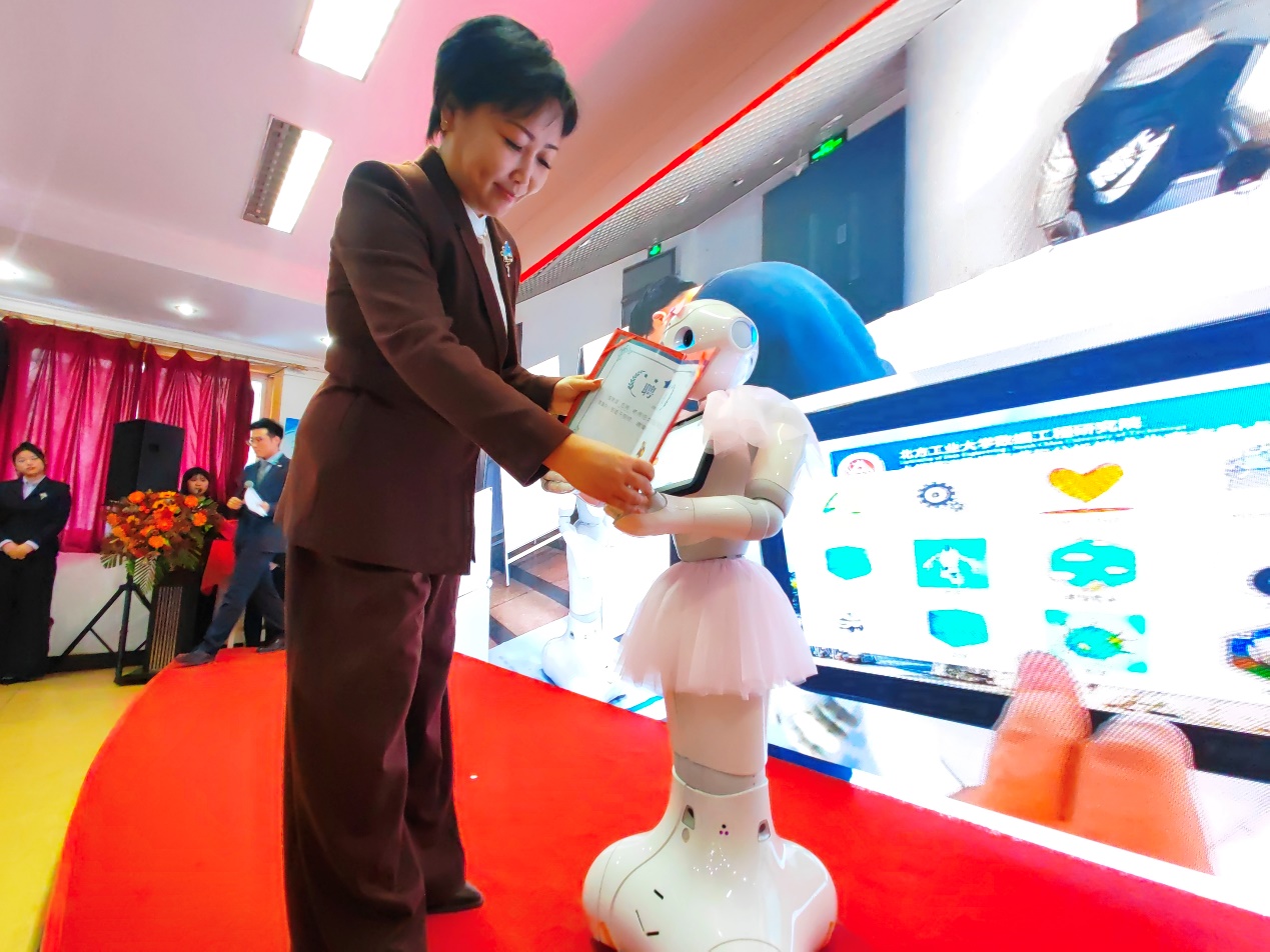 活动当天,澳门十大信誉网赌大全党委副书记陈卫为“吉祥”老师送出寄语,期待她能够积极工作,为孩子们提供情感交互与陪伴,让孩子们的世界将变得更加丰富多彩。小飞象训练发展中心理事长赵星郑重地为“吉祥”老师颁发了聘书,标志着这位智慧机器人将正式肩负起孤独症儿童科技康复的重任。活动中,这位智慧与温情并存的机器人“吉祥”老师,不仅与“星宝”们共同演绎了《小猪吃的饱饱》、《元日》、《阳光彩虹小白马》等节目,生动展示了科技与教育的深度融合,更体现了实验室在科技创新与人文关怀方面的双重追求。活动受到《北京日报》、《北京青年报》、石景山电视台、石景山融媒体等媒体报导。